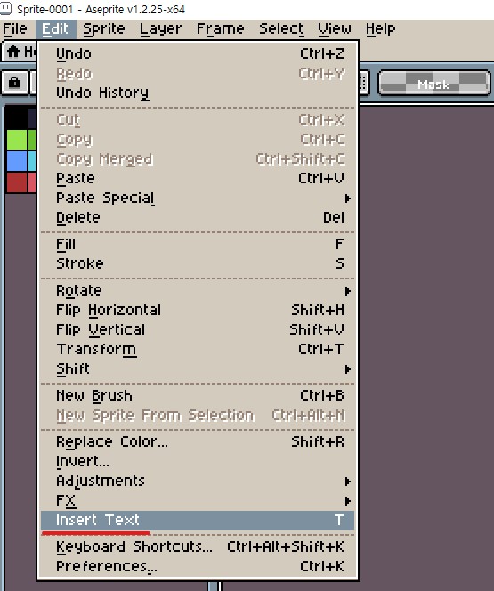 에이스프라이트에서 Insert Text(텍스트 삽입) 기능으로 도트를 찍지 않아도 텍스트를 입력할 수 있습니다.